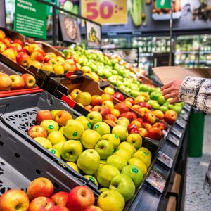 REFRIGERATED FOOD DISPLAY IN SUPERMARKET AISLE